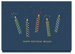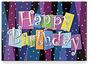 Looking for something a little different in your business birthday cards? You will find some very colorful designs this year at The Gallery Collection. Start with Birthday Blast Card, design #116AE. Here is a bright card with colors that pop! Lots of purple and blue, with the words “Happy Birthday” outlined in silver foil. The raised letters provide a nice contrast to the banners in the background and the large size of the lettering makes the message very clear. Colorful confetti falls through the design, as if there was a little explosion of fun. One of my customers said she picked this card because it really looked like fun and was a nice change from their previous birthday cards. Everyone who opens this card will say, “Wow! What a great card!”
