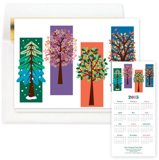 On the other hand, the Four Seasons Calendar Card is equally attractive. The highlighting of the trees as they change from winter to spring then on to summer and fall are each set against a background of a vibrant color that also draws your eye.