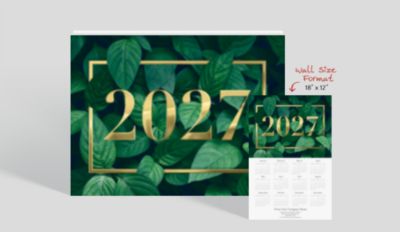 Ring in the new year with this personalized wall calendar! This calendar displays the image of your choice surrounded by a gold foil border above the year, written in a traditional font and gold foil. Customize and add your company name, information, and a personal message at the bottom in ink.