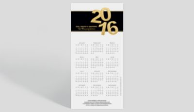 A bright calendar card to bring in the new year! All 12 months of the year are featured on the front in different colors, highlighted in gold foil. Right in the center, the year, along with a new year message, can be seen with a black background. Add your information just below the calendar.